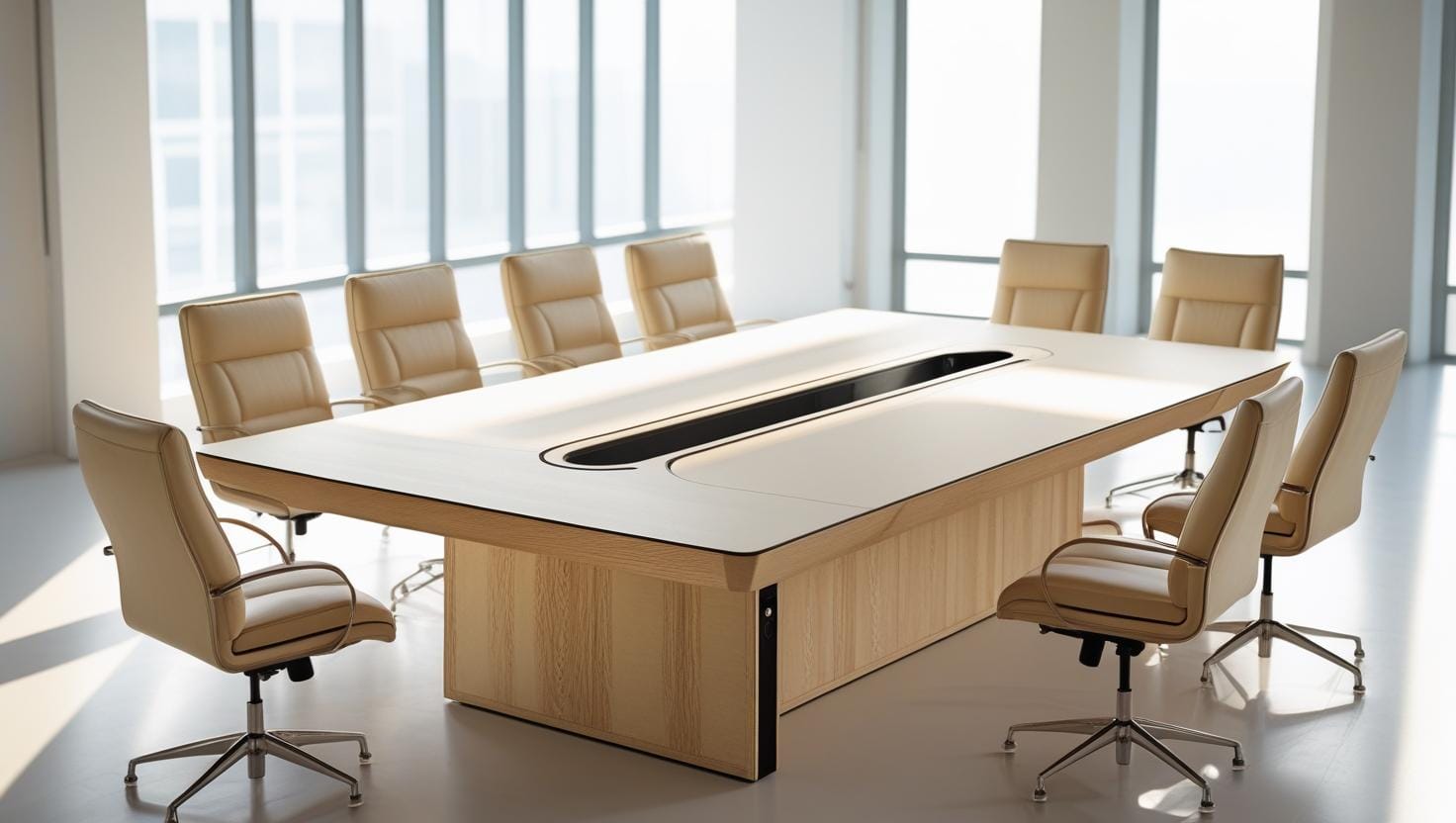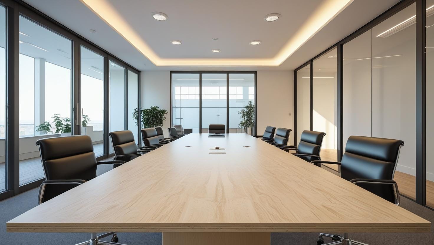 Ngoài ra, ánh sáng và màu sắc tổng thể của văn phòng cũng ảnh hưởng đến lựa chọn bàn họp. Nếu không gian thiên về hiện đại, nên chọn các tông màu trung tính như trắng, xám hoặc vân gỗ sáng. Ngược lại, với văn phòng mang phong cách truyền thống, các mẫu bàn gỗ tối màu sẽ tạo cảm giác đẳng cấp và uy tín hơn.