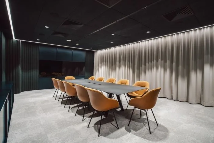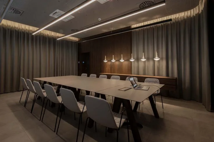 Phong cách tối giản (minimalism) đang chiếm ưu thế với các đường nét gọn gàng, màu sắc trung tính như trắng, xám, be hoặc vân gỗ sáng. Thiết kế này giúp không gian phòng họp trở nên rộng rãi và dễ chịu hơn.