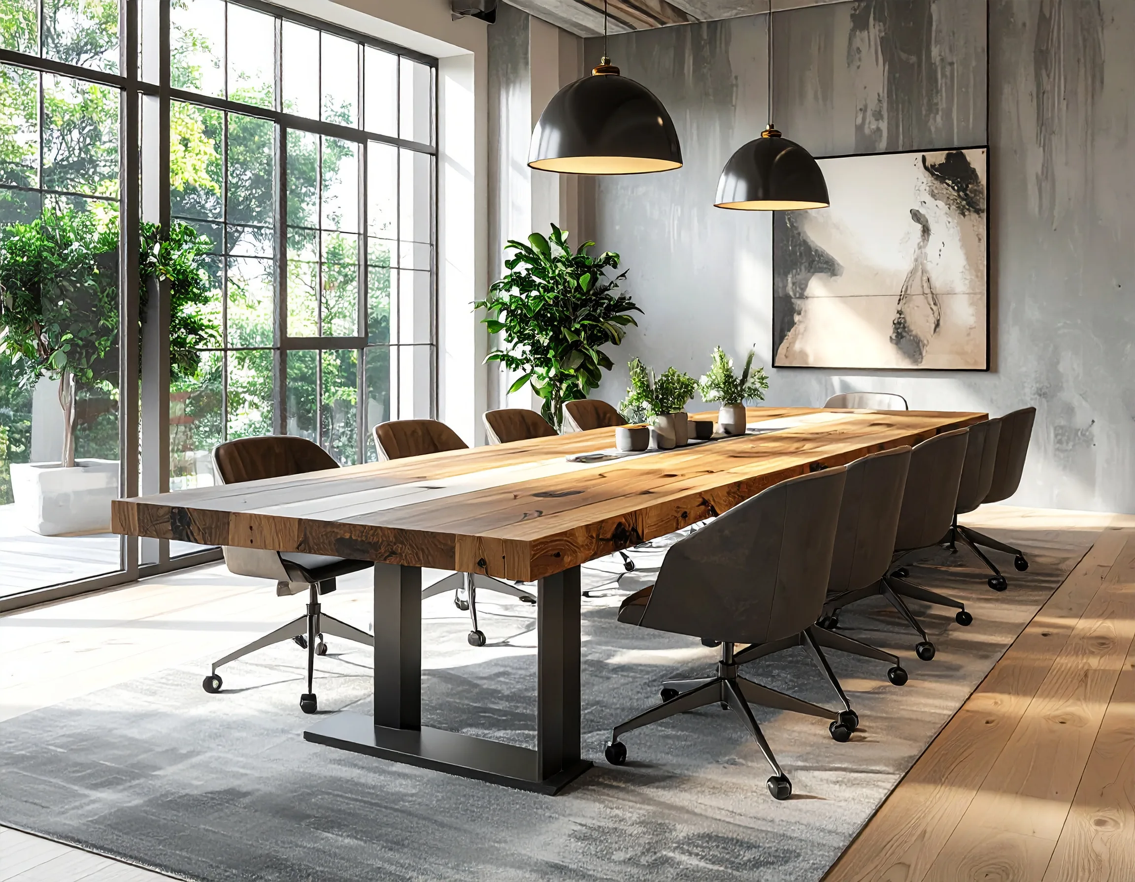 Bàn họp chân sắt kết hợp mặt gỗ Melamine là xu hướng nổi bật, mang lại vẻ đẹp hiện đại và độ bền cao.