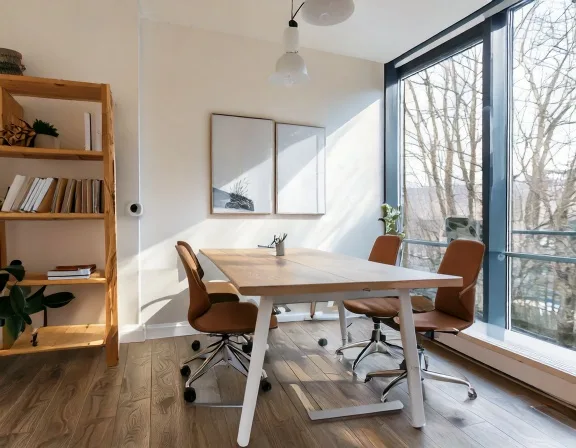 Gỗ tự nhiên mang lại vẻ đẹp sang trọng và đẳng cấp. Các loại gỗ như gỗ sồi, gỗ óc chó thường được sử dụng trong các phòng họp cao cấp. Tuy nhiên, chi phí cao hơn và cần bảo quản kỹ hơn.