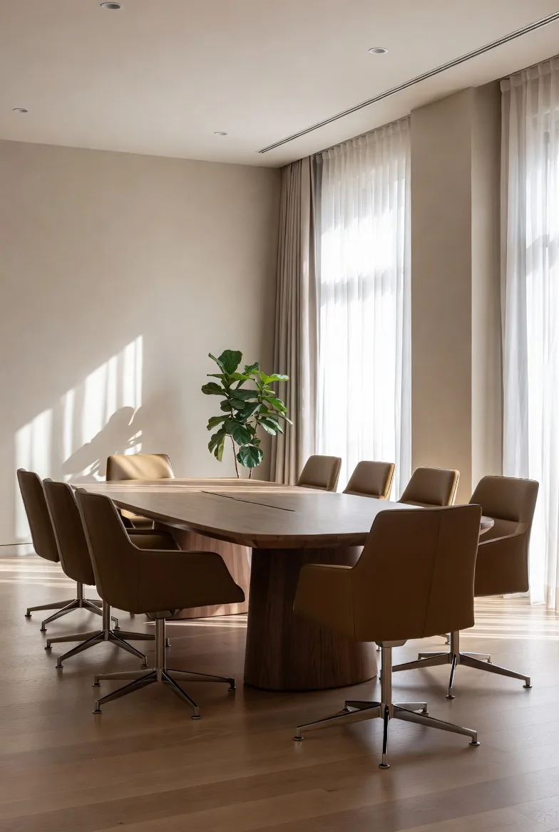 Trong bất kỳ thiết kế nào, bàn họp luôn là yếu tố trung tâm quyết định tổng thể không gian. Một chiếc bàn họp đẹp, phù hợp sẽ giúp nâng tầm toàn bộ phòng họp.