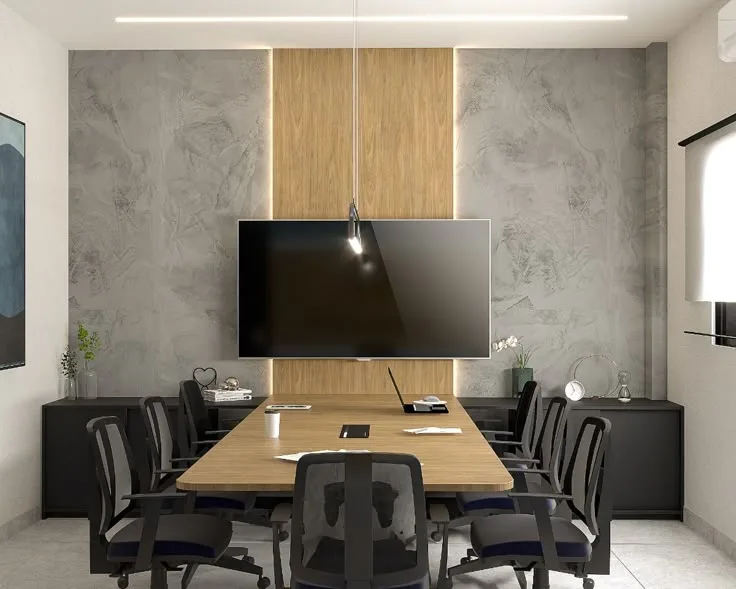 Thiết kế gọn gàng, đường nét tinh tế giúp không gian phòng họp trở nên hiện đại và chuyên nghiệp hơn. Các chi tiết thừa được loại bỏ, thay vào đó là sự tối ưu hóa công năng.